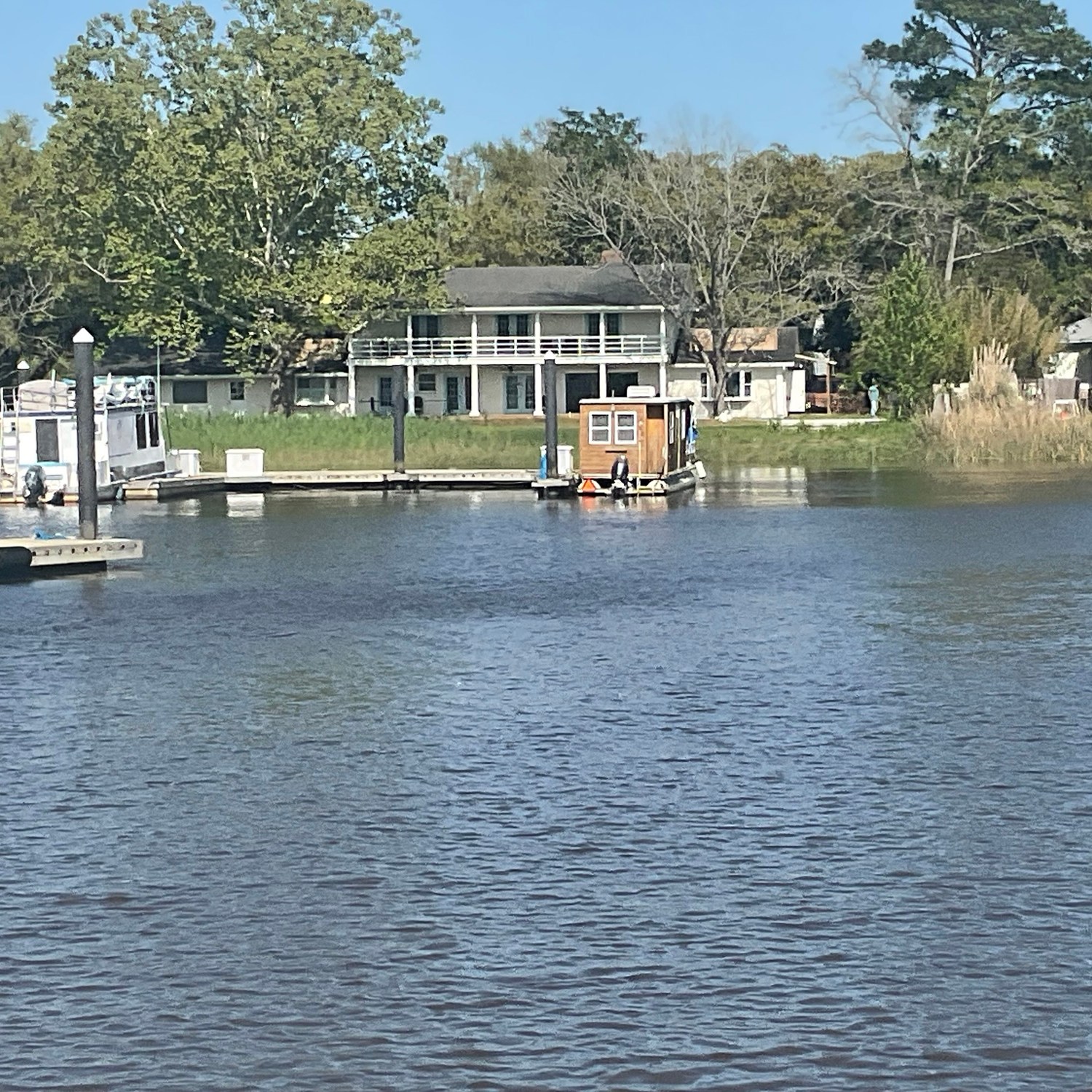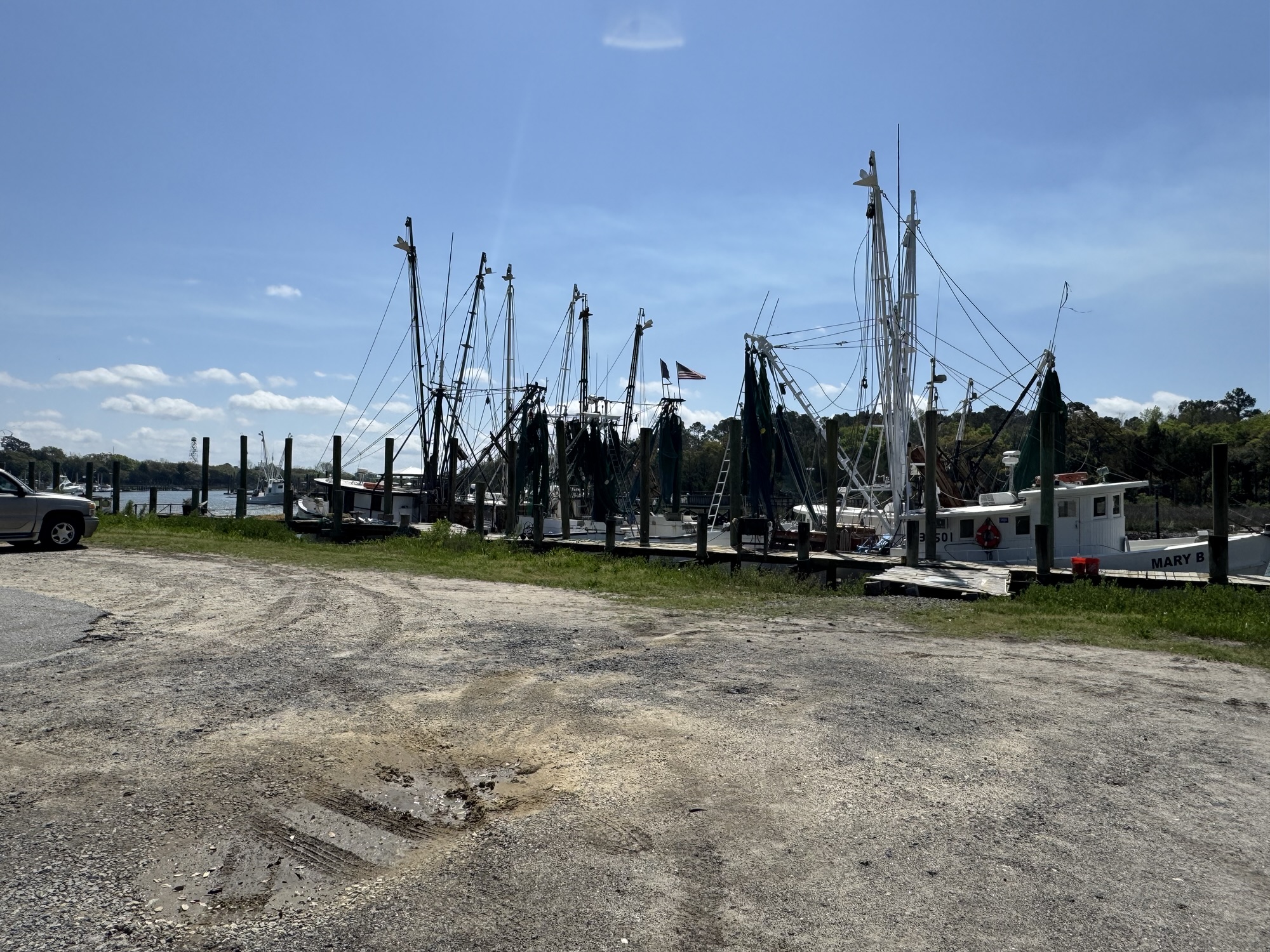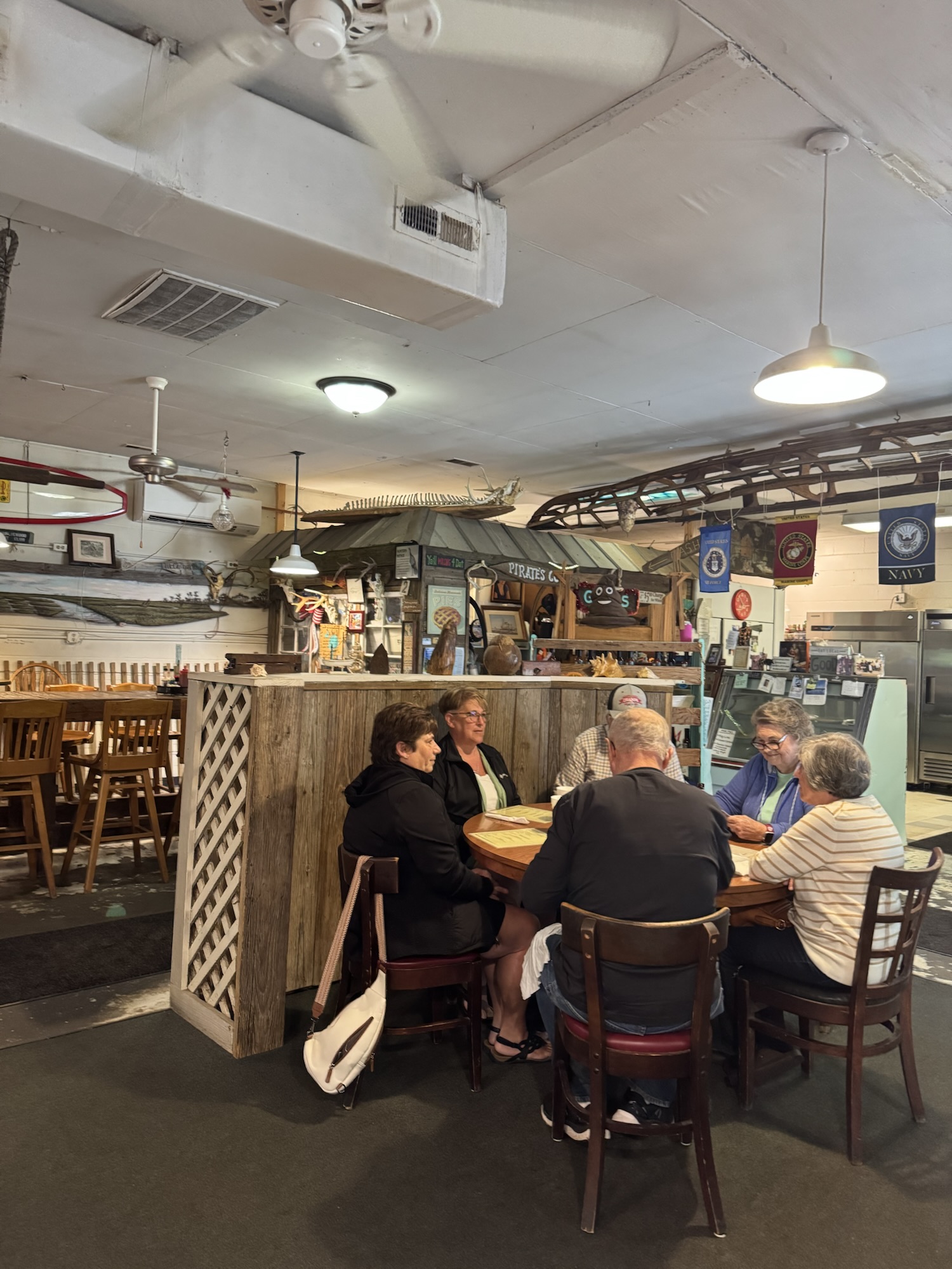 We pull anchor and headed to Leland Oil to get some fuel, ice and walk to a very popular seafood restaurant for lunch. We met the owner (Rutledge) who mostly runs the dock/marina by himself. Super friendly…he offered to drive us to the restaurant but we need the exercise! We decide we will bring him back a piece of pie.