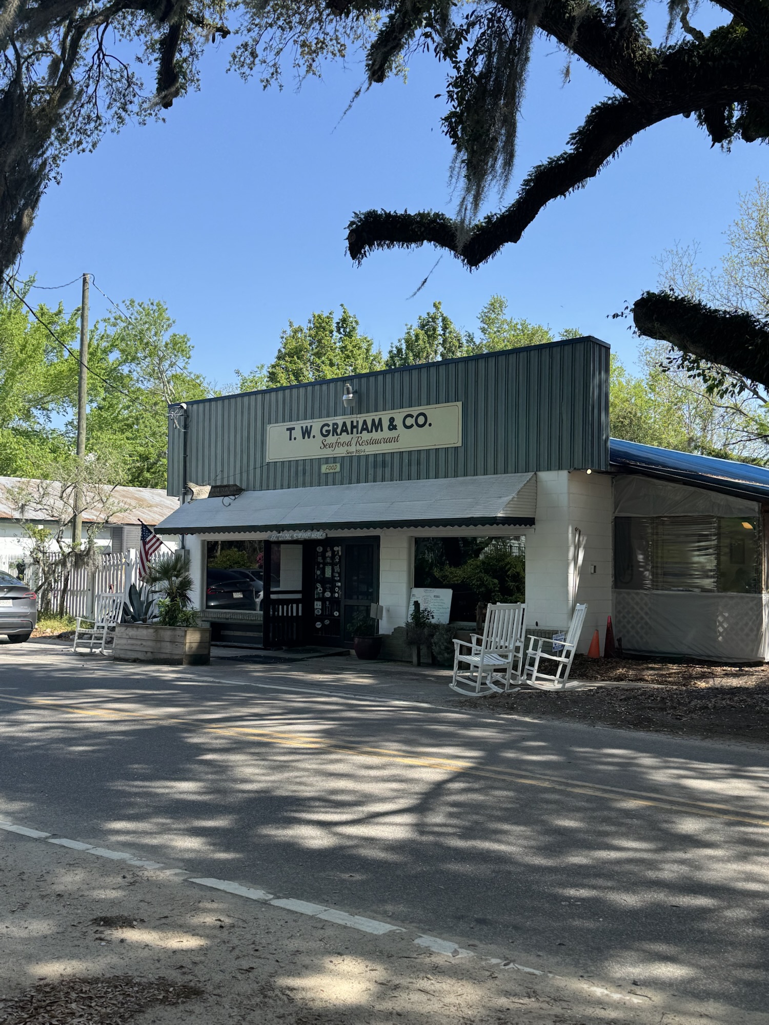 The restaurant (TW Graham & Co) was everything we have read about it. It’s been in business since 1894! Food was terrific! We started with fried green tomato’s and grouper fingers, then shared a flounder/shrimp combo. Of course we had leftovers to bring back along with a piece of their famous key lime pie (and one for Rutledge). That’ll be later.