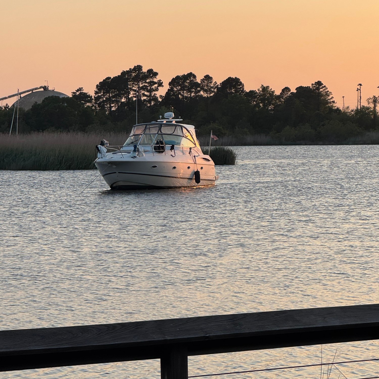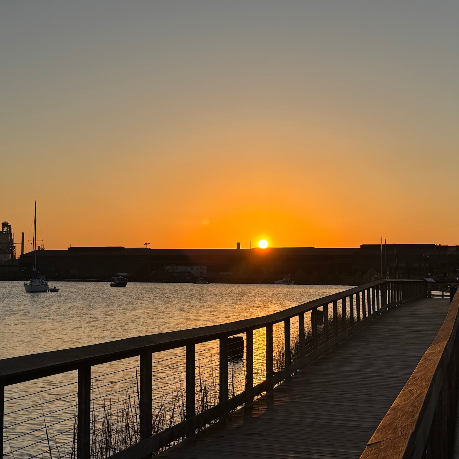 Once we arrived in Georgetown, we looked for a decent anchorage. We finally settled on one and its just a shrt dinghy ride to the town. We decided to go in for a small bite at Buzz’s Roost. A local favorite dive bar. We shared a burger, which was pretty darn good. We could see our boat from our table and watched a beautiful sunset over the old steel mill.