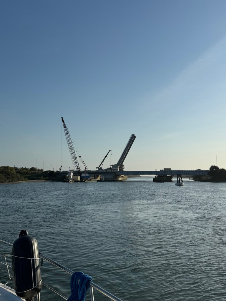 Once we got to the bridge, there were several boats waiting. This bridge has been under construction for quite some time and has been a nightmare for many boats. During the week, they changed to only opening for one hour from 12-1. A couple of weeks ago there was an issue and they couldn’t get the bridge to open at all. There were lots of boats stuck for 22 hours in a spot where you cannot anchor (underground cables). We were very fortunate to not have any issues!