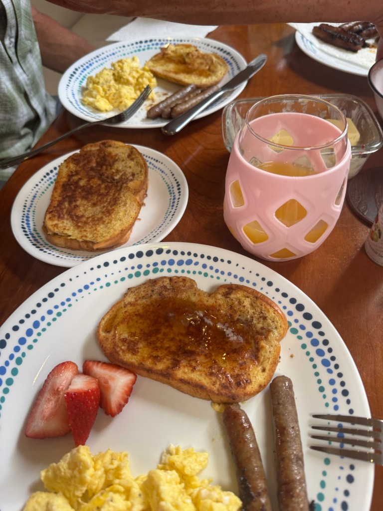We started our Easter morning by making Scrambled eggs, French toast and sausages along with mimosas for brunch.