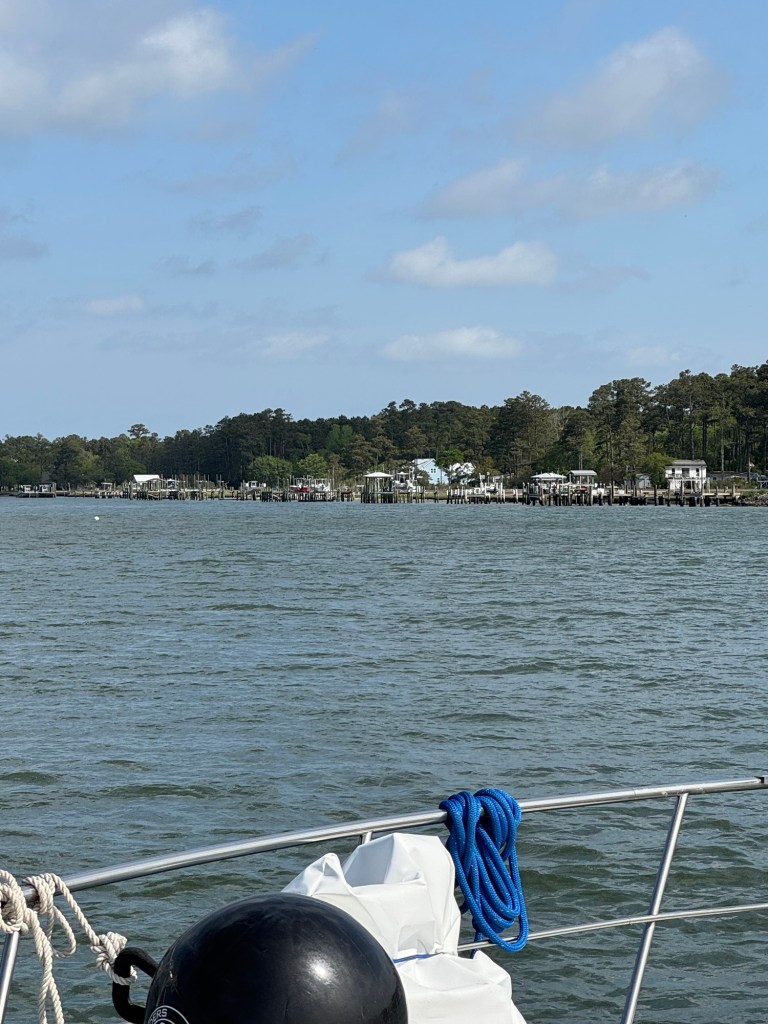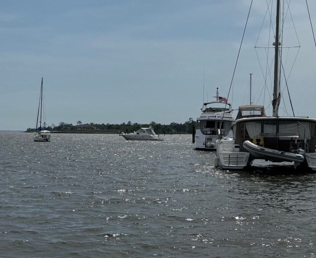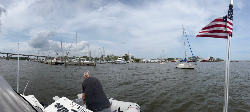 We left Beaufort, NC to head up to Oriental, NC. It was a short day, 21 miles. We anchored in a Bay Area just outside the marina. It was a hot and humid day. 80+ degrees and 80% humidity. It got a bit windy in the late afternoon/early evening but the wind finally died down overnight.