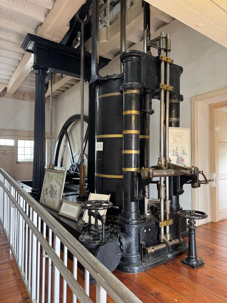 The museum is housed in the original canal pump house complex of the first lock. They had an 1851 steam engine on display, once used to power the lift wheel. The massive cypress lift wheel itself is still there—it was fascinating to see.