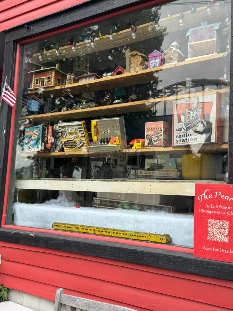 Chesapeake City is a charming little town. Of course, not much was open on a Tuesday. We managed to visit the C&D Canal Museum just before closing. The canal, completed in 1828, stretches 15 miles and connects Chesapeake City, MD to Delaware City, DE. It’s one of the busiest canals in the world. Originally, it had four locks on two levels, but over time they deepened the channel and removed the locks.