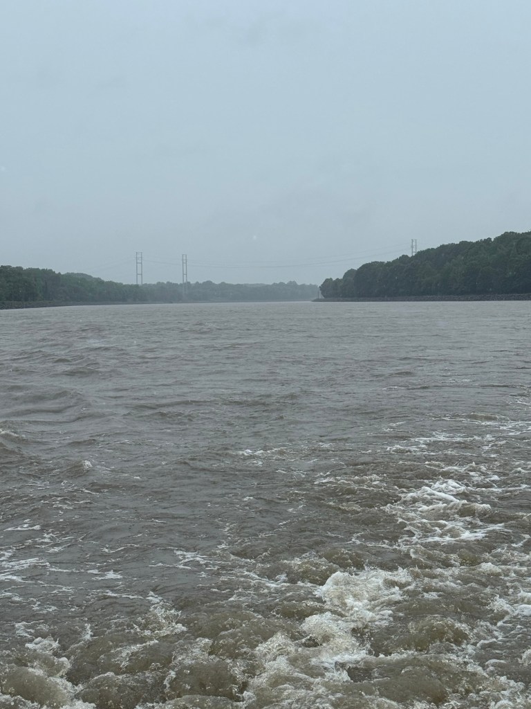 So there we were, holding position in wind, rain, and current for 15 minutes while the train rumbled through. That was… fun.