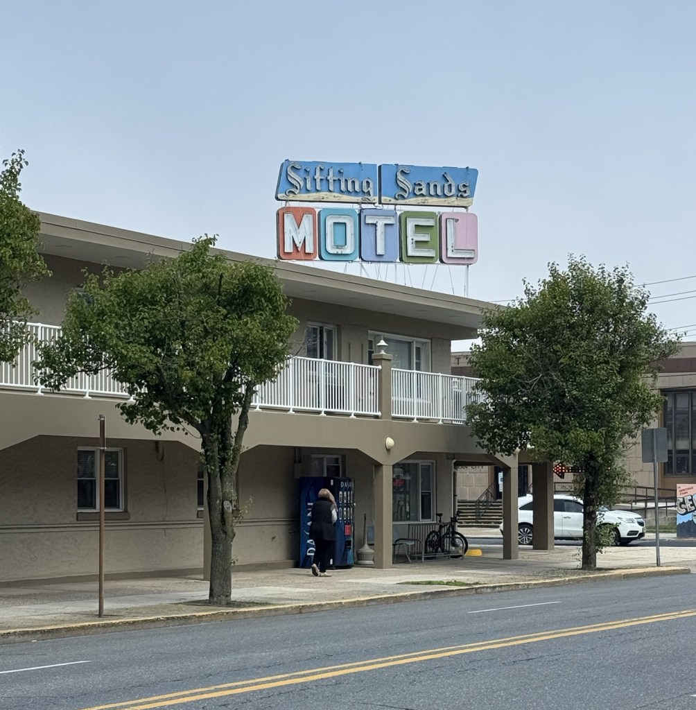 Once tied up, we had three goals: walk the boardwalk, hit the grocery store, and grab a bottle of wine or two. First stop—the boardwalk. And what did we find? Fog! Still lingering! I figured it would’ve burned off by then, but no such luck. Even in the mist, though, the boardwalk was full of charm. I loved seeing all the old-school signs and vintage motels that somehow still look brand new. Some of the shops have been there since the 1930s. It felt like stepping back in time—and it definitely scratched the curiosity itch.