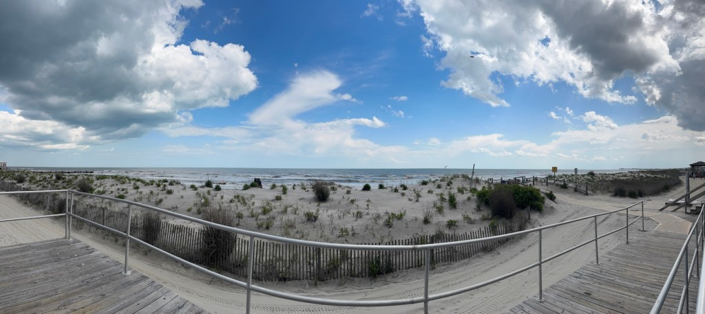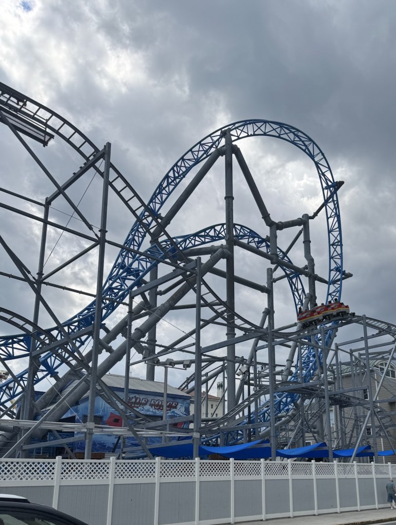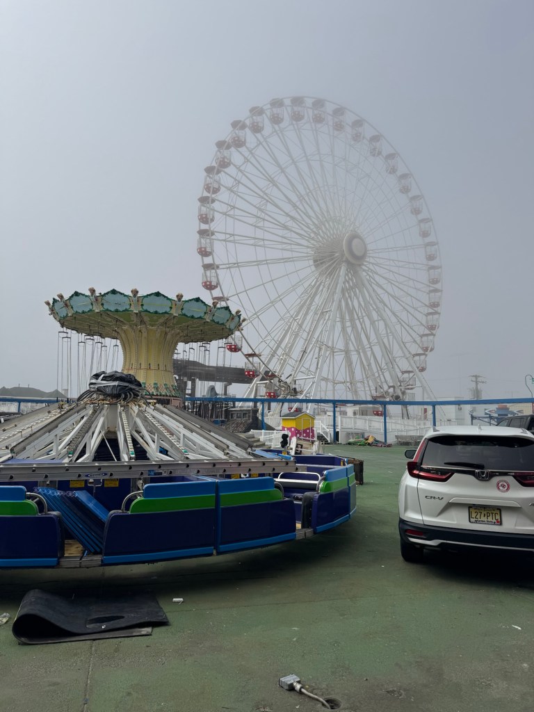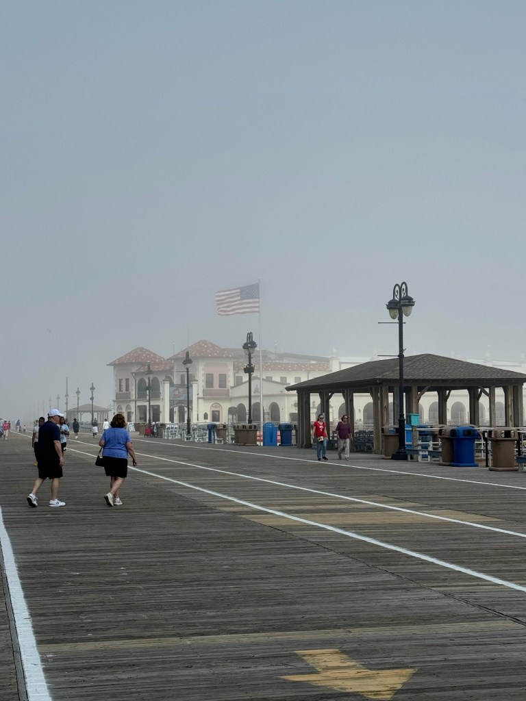 Another blustery, rain-swept day—but we weren’t about to let it keep us inside. By afternoon, we managed to sneak in a walk down to the boardwalk. It was alive with energy—rides spinning, kids laughing, music floating through the air, and yes, I could finally see the ocean today!