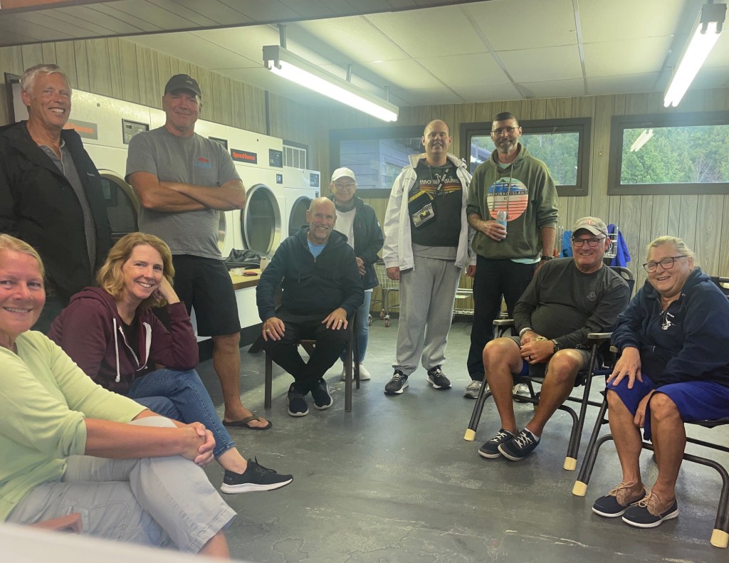 Because of the rain, we moved the party with –Valkyrie, Tortuga, Back Forty, and new Loopers Current Obsession into the laundry room. On the Great Loop, you’ll find docktails, rocktails… and apparently now, laundry-tails! I even tried to convince a few folks to hop into the dryers for a photo—but no takers. Still, we had a great time together.