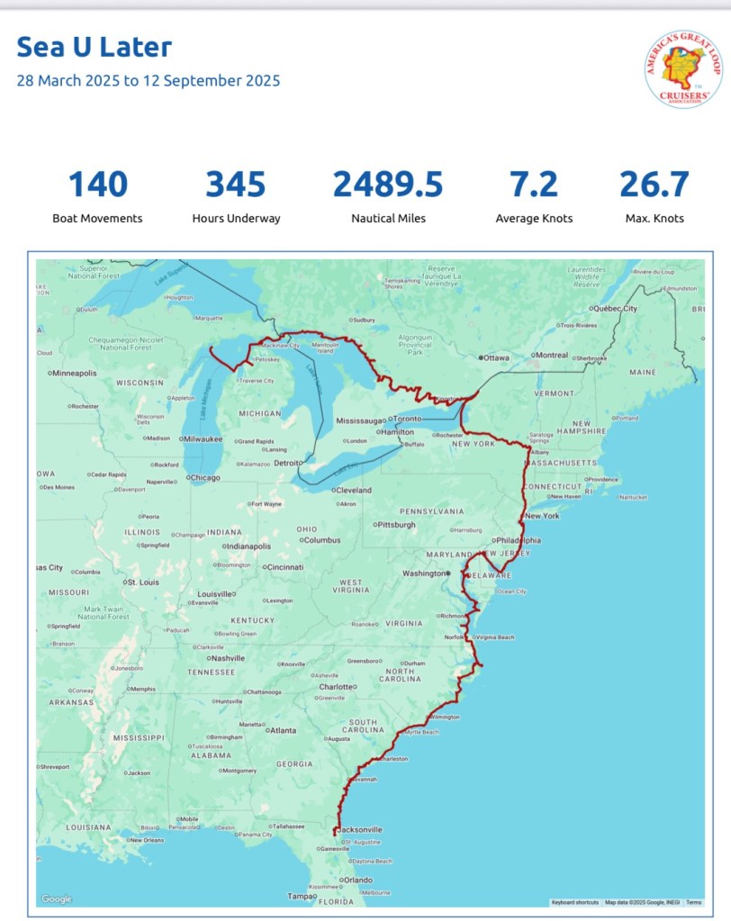 We’re now settled into Yacht Works Marina in Sister Bay, where we’ve officially traveled 2,489 miles—just shy of the halfway point on our journey.