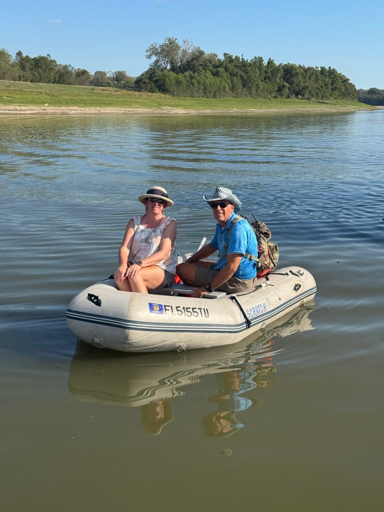 We ended the day anchored just off the channel at Sharps Bar. The river is wide and open here—calm, serene, and just what we needed after a hectic day. We took the dinghy over to Spirit of Adventure and shared a relaxing beverage before heading back for dinner aboard. The night was still, peaceful, and the stars were out in full.