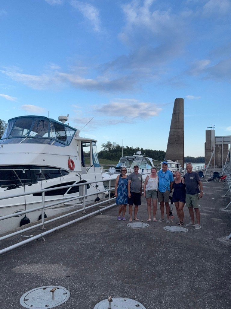 We’ve left Hoppies cruising roughly 36 miles downstream to spend the night tied up on the Kaskaskia Lock wall. Our little flotilla is still going strong — Jelly Bean and Spirit of Adventure are right alongside us. Millennial Falcon is with us too, though they opted to anchor out on the wide Mississippi for the night. The rest of us veered off the main channel and slipped up the quiet Kaskaskia River to settle in at the lock wall.