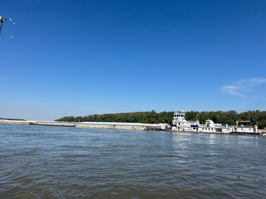Today was another 70-mile run as we pushed toward Cairo and made the big turn up the Ohio River. Before 9 a.m., we’d already met five different barges—talk about a busy morning! One of them was a monster—five wide and seven long. It was like navigating around a floating freight train.