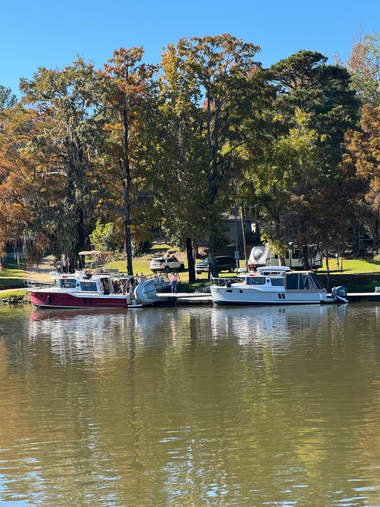 We all got another early start for another long day. The Tombigbee River gets a little old since there is not much differentiation of senery along the way. Normally by now the fall leaves would be spectacular and that would have made such a huge difference. We went through the final lock!!! We ended our day at an anchorage called Three Rivers Lake. Another 70+ mile day.