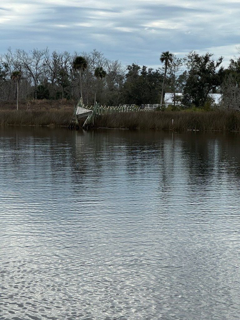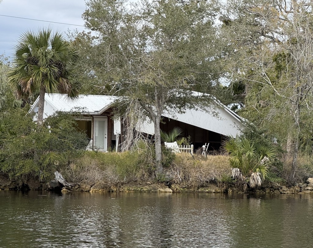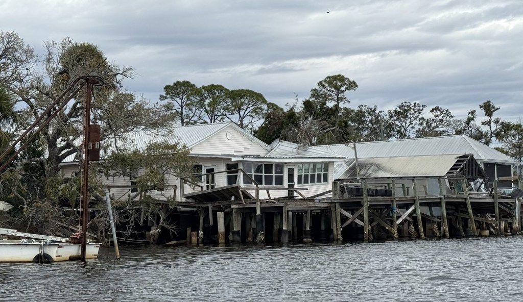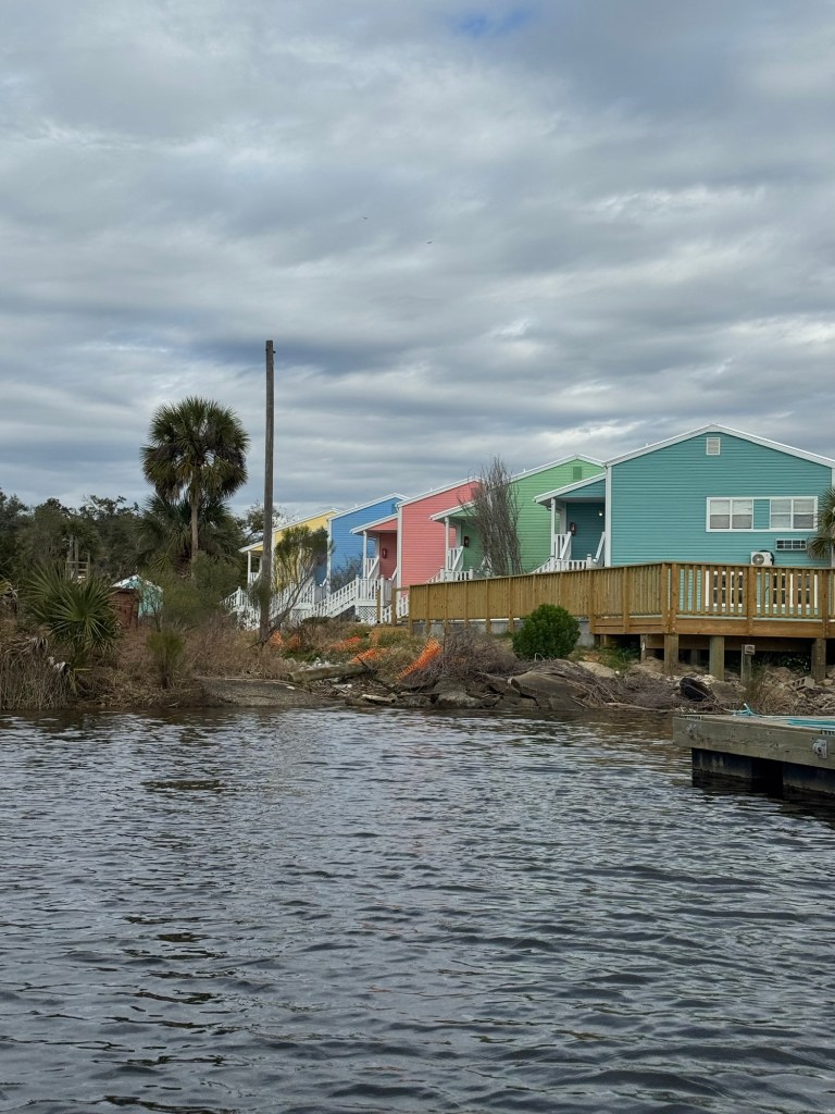 Once the work was done, the six of us Loopers—Avontuur, Winsor Rose, and us—piled into our dinghies and headed upriver to explore. This poor little town has been through so much. Hurricane Idalia tore through in August 2023, and then Helene came back even harder in September 2024, nearly wiping it off the map. With a population of around 500, the town depends heavily on scallop season (June–September), followed by fishing season. You can see signs of resilience everywhere: new buildings going up, old ones being restored, and sadly, some properties still left untouched. The people here are tough, proud, and clearly no strangers to hardship.