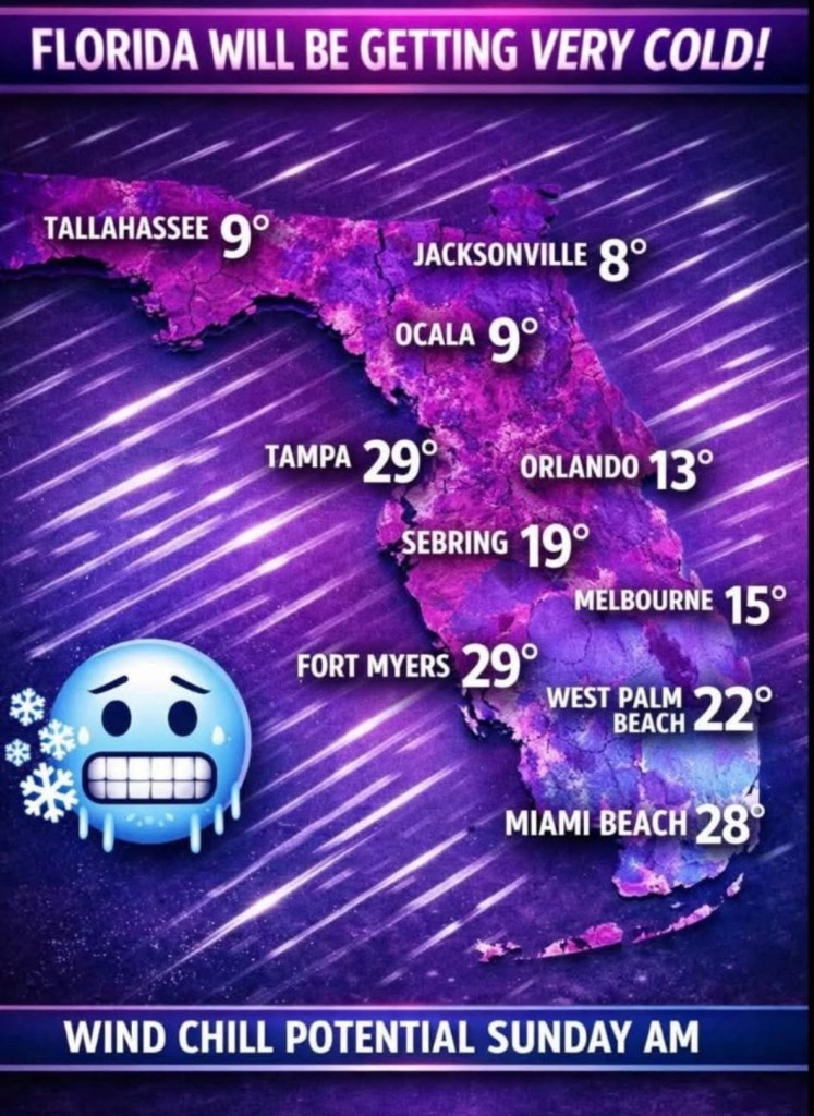 We woke up to 45°… and that was the high for the day. The winds were ramping up too. We took a long walk into town to explore a bit more, get some exercise, and take care of a few odds and ends. The sun helped warm us on the way out, but the walk back was straight into the wind—which was now howling. Sustained 25 mph with gusts up to 45, and out in the Gulf the waves were running 7–10+ feet. Yikes! Tonight’s low: 24° 🥶.