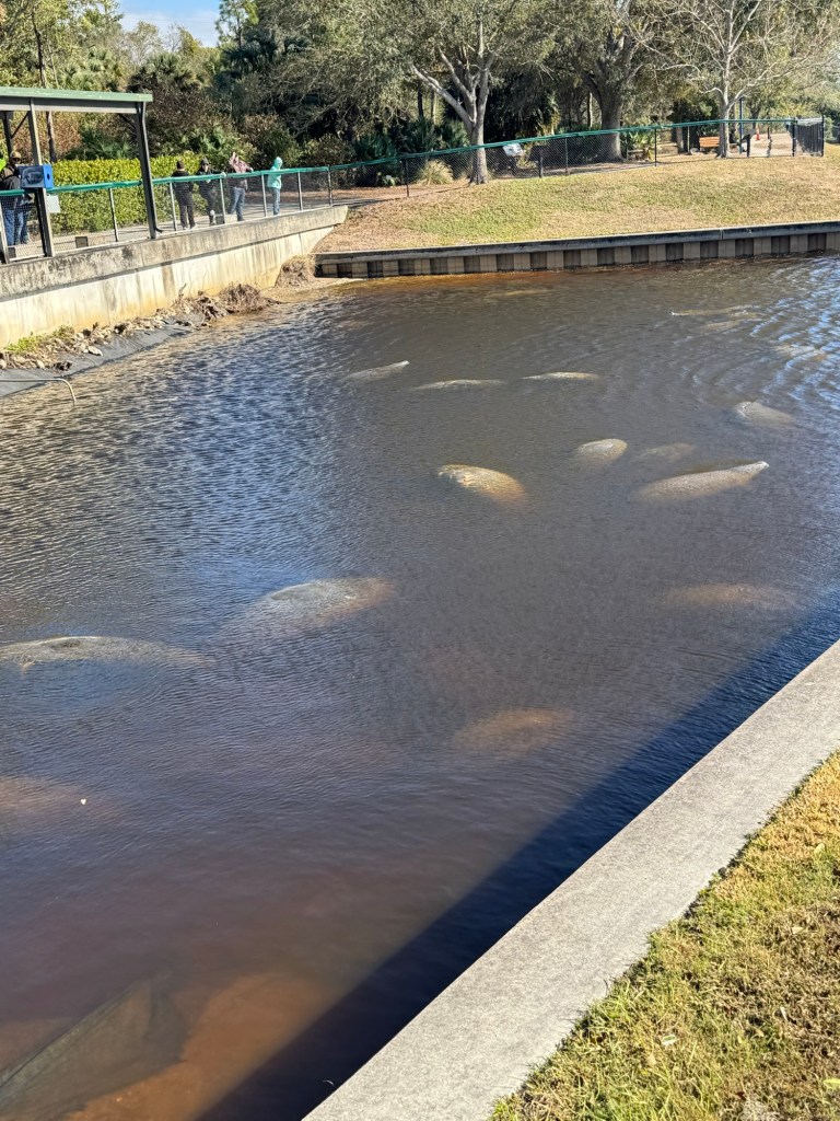 We picked up our rental car at the airport (huge thanks to Louis for the lift! 🙌) and pointed it toward Fort Myers to scoop up my mom. On the way home we stopped at the Manatee Park in Fort Myers. It’s been so chilly, we thought for sure we’d see lots of Manatees! We were not disappointed! There were more Manatees than we have ever seen before.