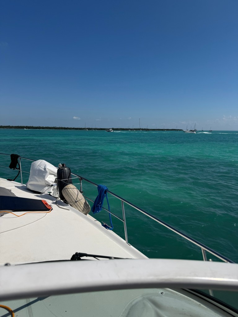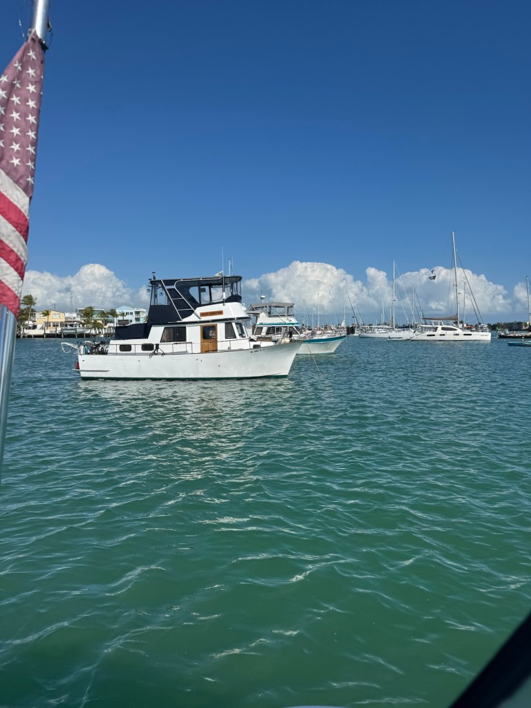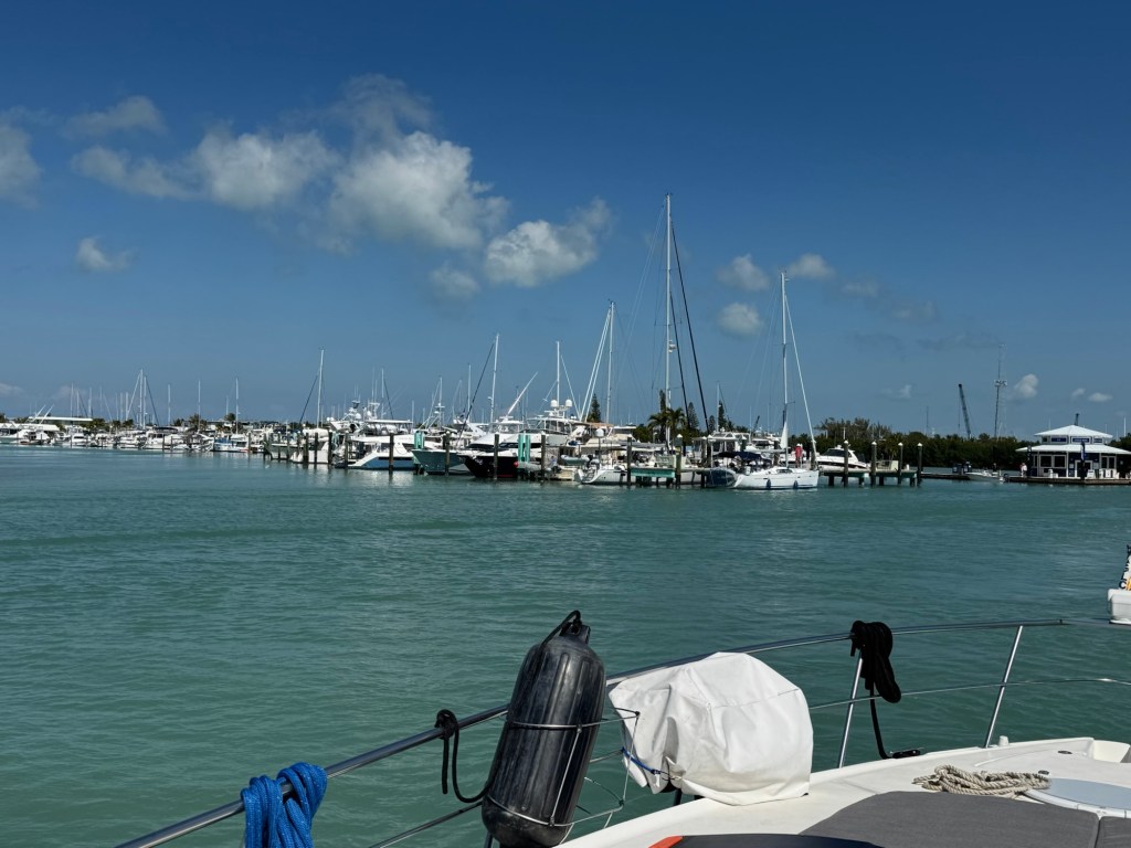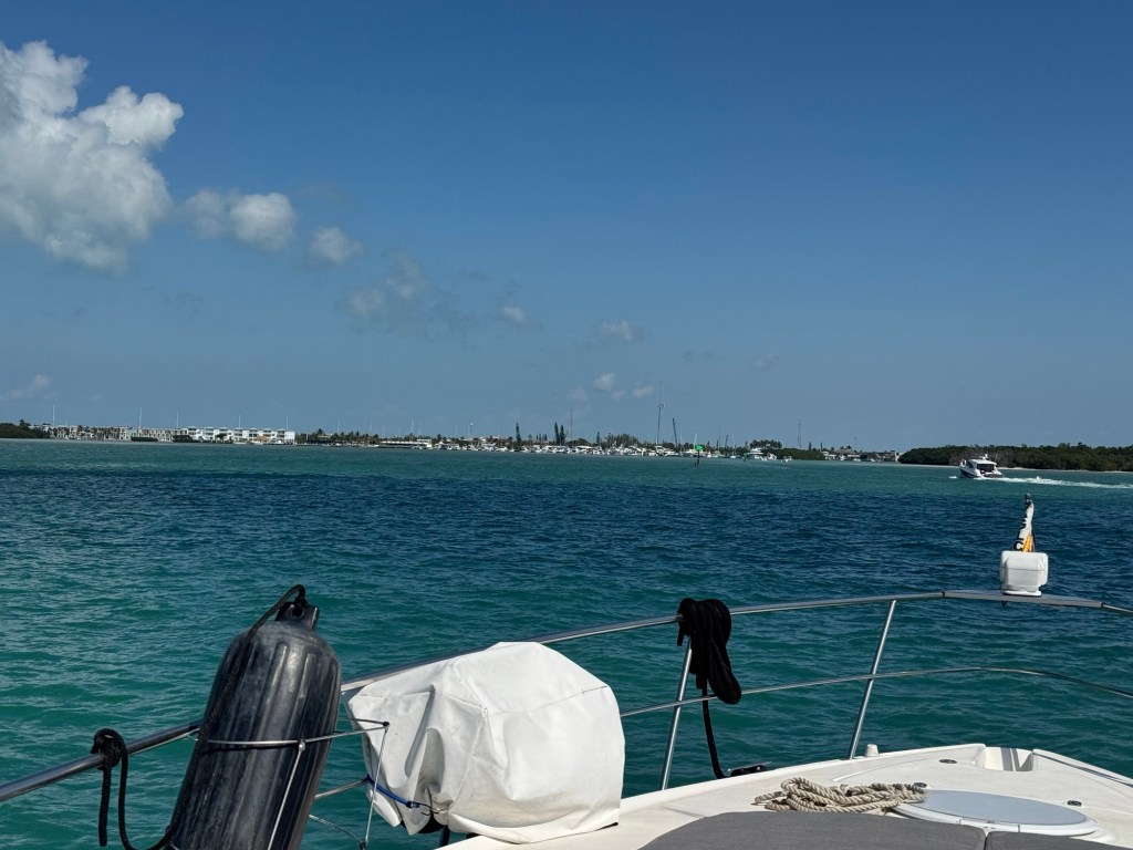 After about two hours, the fog finally lifted as if someone flipped a switch, revealing a gorgeous day and that brilliant Florida Keys sunshine. We cruised into Marathon excited to grab a mooring ball, only to learn an important detail: you actually have to be there to get one — first come, first served. Sounds simple… until you realize there are more than 200 mooring balls… and every single one was taken. With a waiting list, too! Holiday weekend — lesson learned.