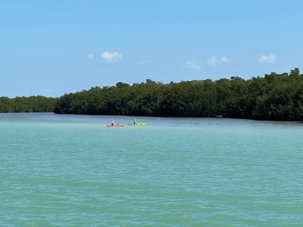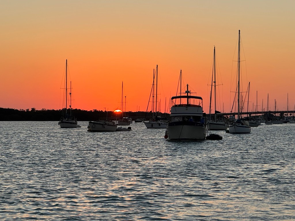 Just before dinner, we had a fun surprise when fellow loopers from Blue Lobstah and Loving Life dinghied over to say hello. Even better — they had discovered a much better anchoring spot nearby and shared the intel. It’s always reassuring to know your looper family is close by, looking out for one another.