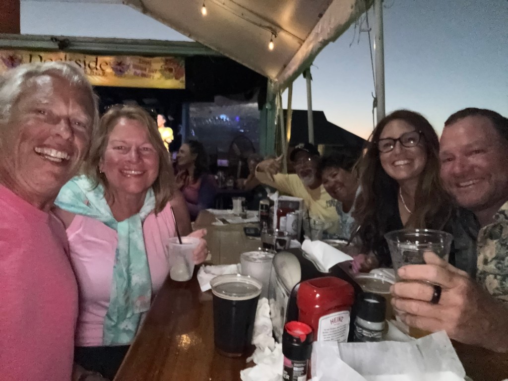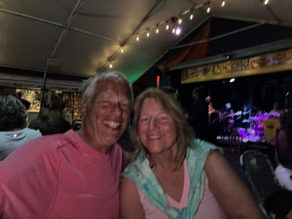 Success at last! Jeff returned victorious with the correct filters in hand. After some much-needed showers and finally picking up our package (more fuel filters), we met up with fellow loopers from Blue Lobstah at The Dockside for the evening. Their happy hour definitely lives up to the hype, and the live band was absolutely incredible. We ended up sharing a table with several other boaters — some loopers, some not — and the night quickly turned into drinks, great food, dancing, and lots of laughter.
