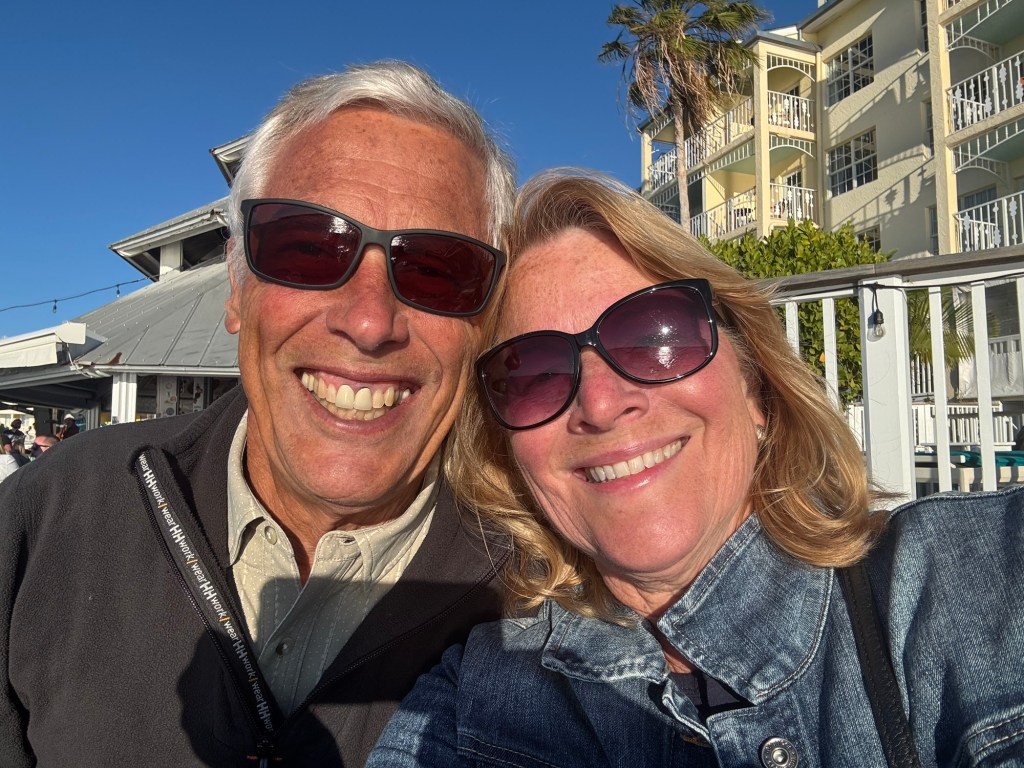 First stop: a quick prescription run. After that, we made our way to Sunset Pier, grabbed a couple of stools and drinks, and settled in. The view here never disappoints — endless water, boats drifting by, and that unmistakable Key West energy. The sunshine felt especially good after the chilly front that blew through; temperatures had dropped nearly 20 degrees over the last few days, and we were more than ready to thaw out.
