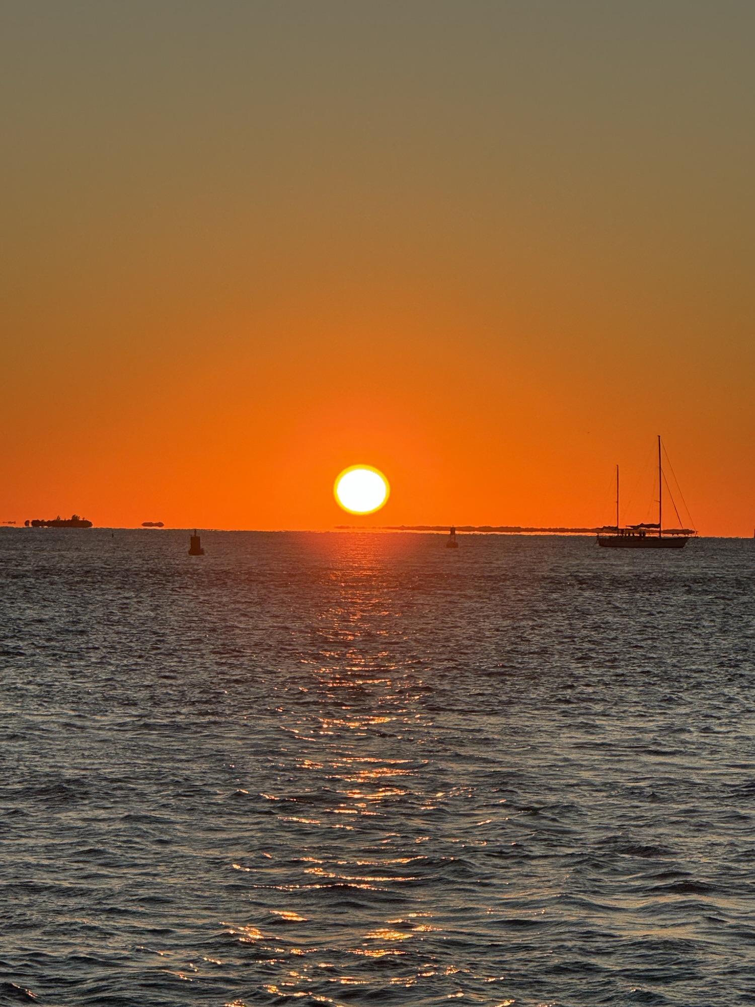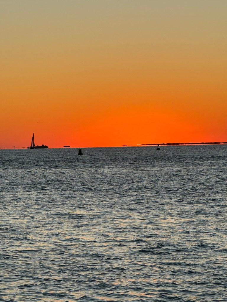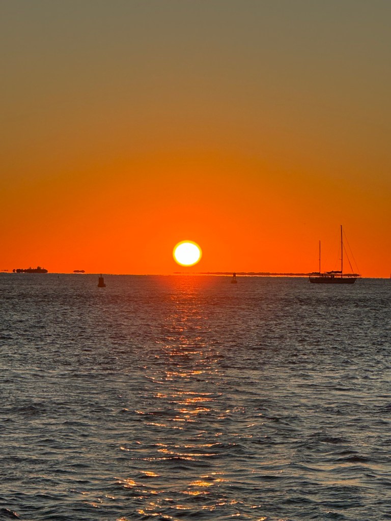Once our drinks were finished, we wandered over to Mallory Square to check out the nightly performers. Only one act was going, but we watched for a bit before claiming our sunset spot — because missing a Key West sunset simply isn’t an option. And once again, it delivered. That glowing orange ball slowly sank straight into the ocean, reminding us exactly why this place is so loved. Absolutely breathtaking.