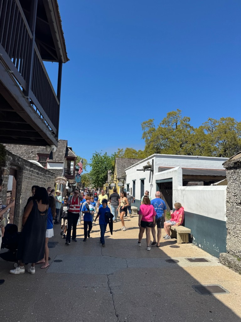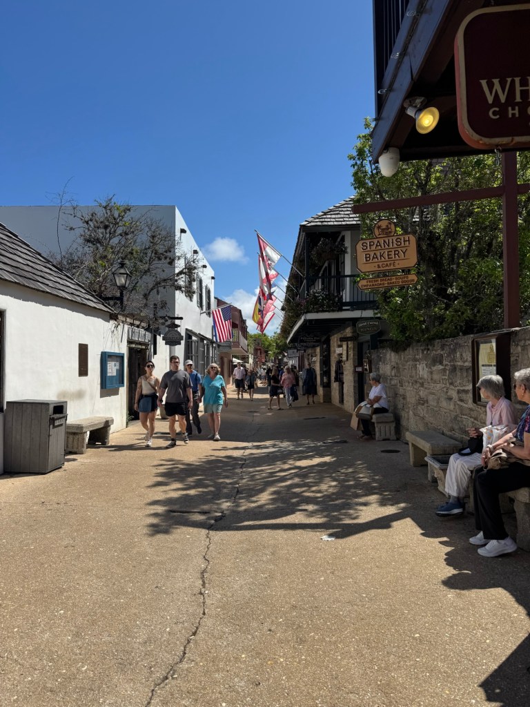 And wow… it was buzzing. People everywhere, energy in every direction. The streets were lined with the cutest little shops—fudge, ice cream, clothing boutiques—all tucked into buildings that date back to the 1500s. It’s wild to think you’re casually strolling through history in the oldest continuously occupied city in the U.S., founded in 1565 by the Spanish. Somehow, it all feels beautifully preserved without losing its liveliness. Just… adorable.