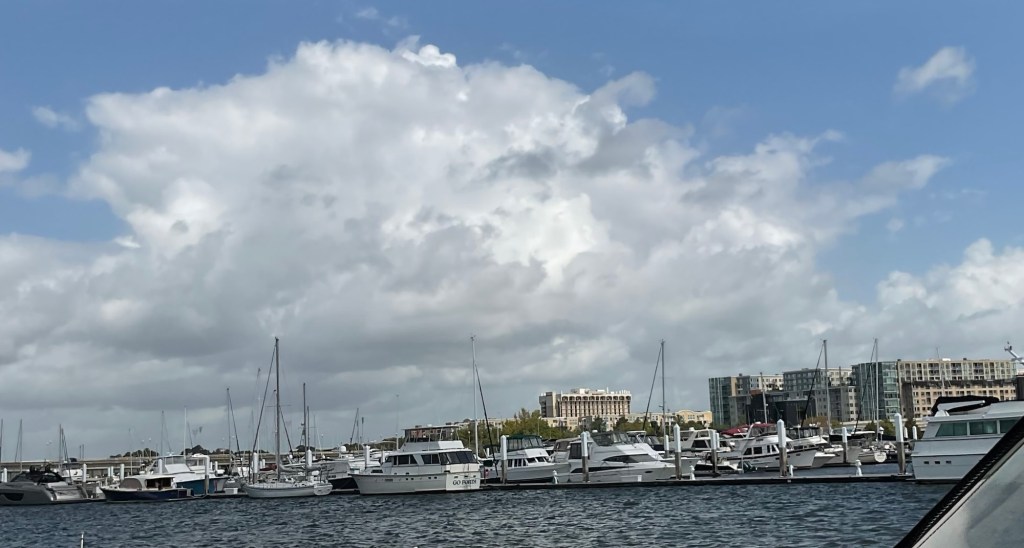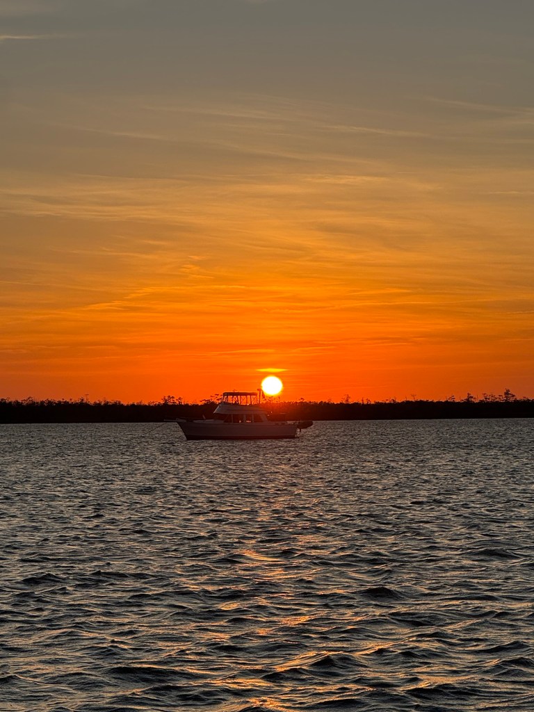 We pulled into the marina, we are now back in Florida! We got settled into our slip, and headed straight to the office to check in. A few hiccups popped up — nothing disastrous, just the usual boating adventures. They’d assigned us a 30-amp hookup instead of the 50-amp we need, and there weren’t two 30s available nearby to combine. Whenever we use our adapter, it only powers half the boat — and of course, it’s always the half without the stovetop or microwave. Not exactly ideal when you’re trying to cook up the last of your food before heading home for two months!
