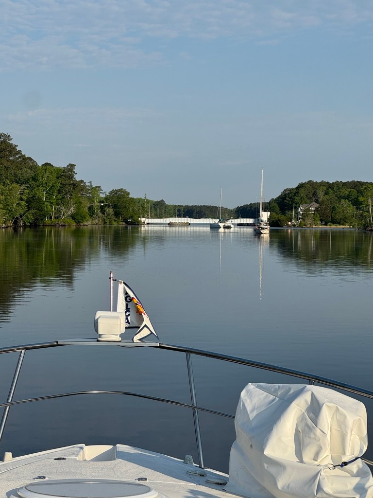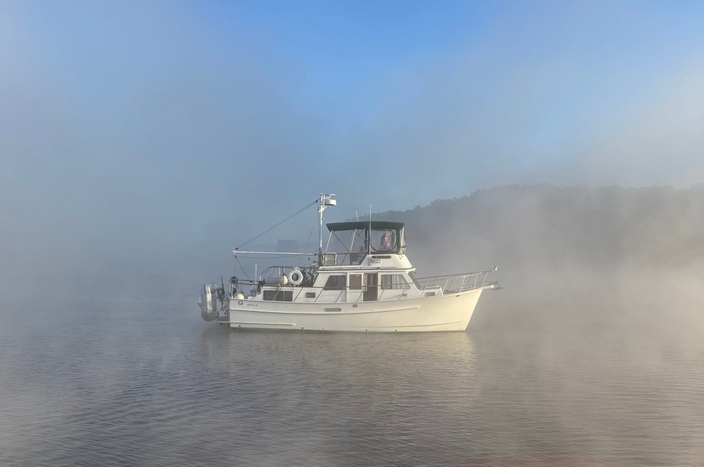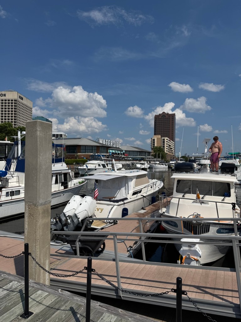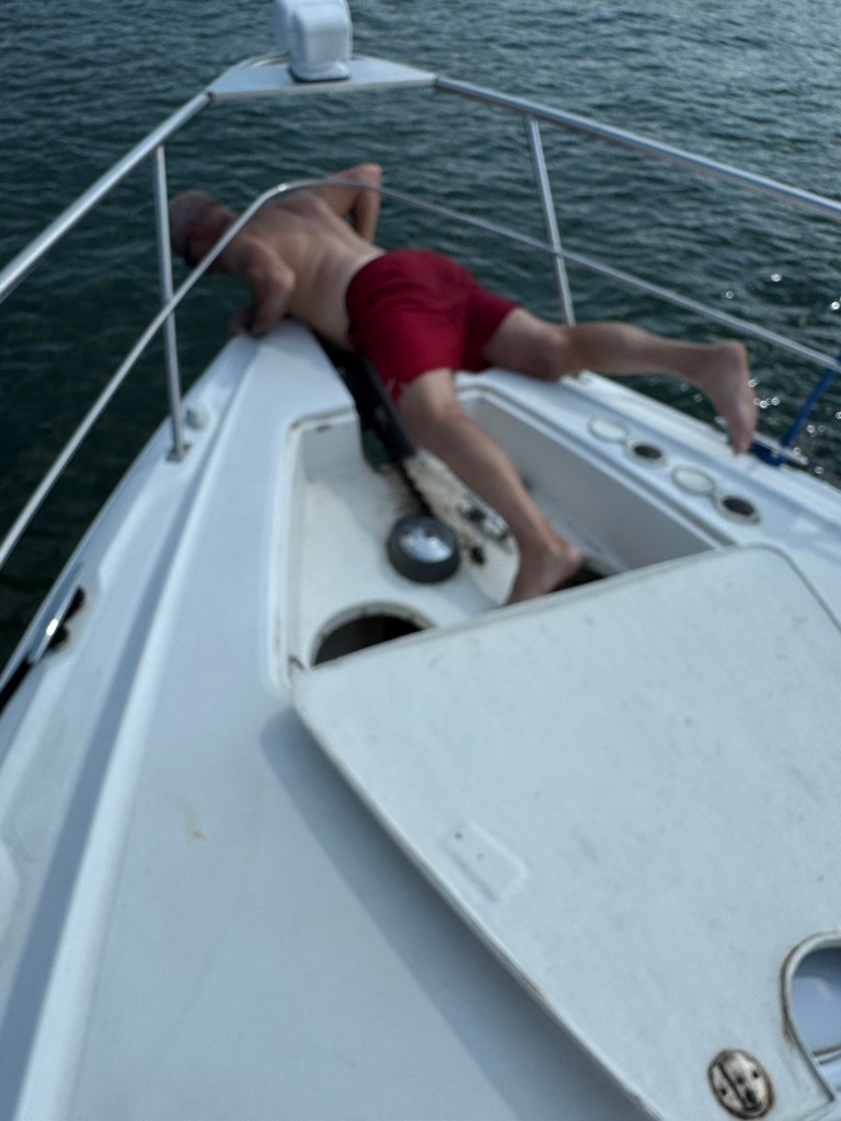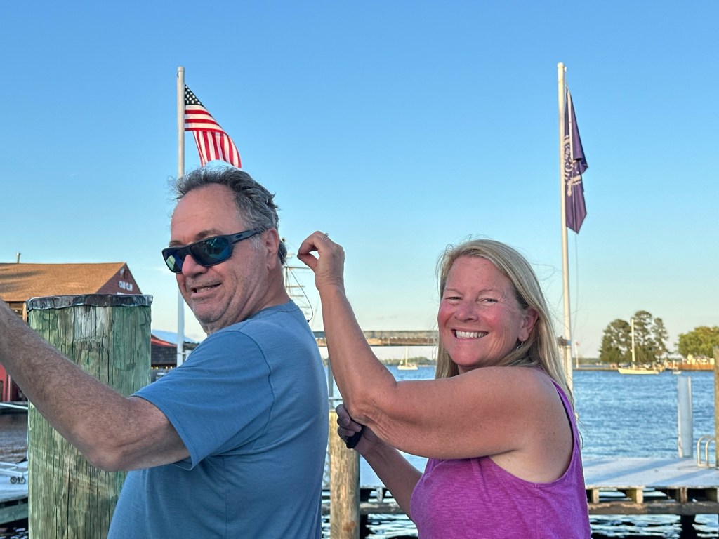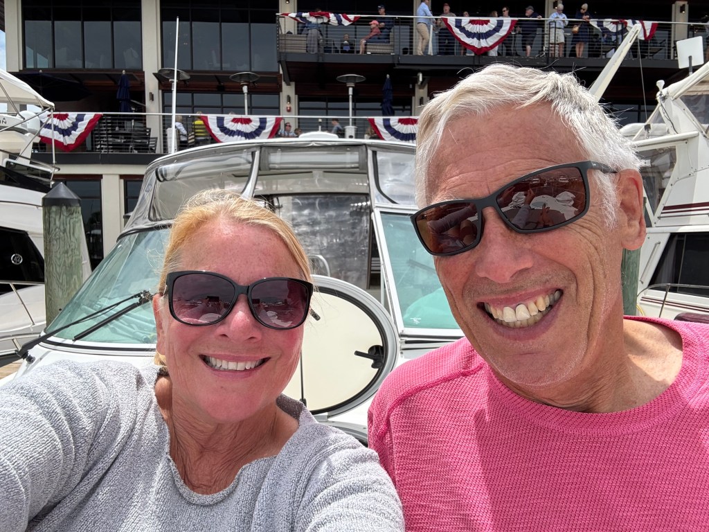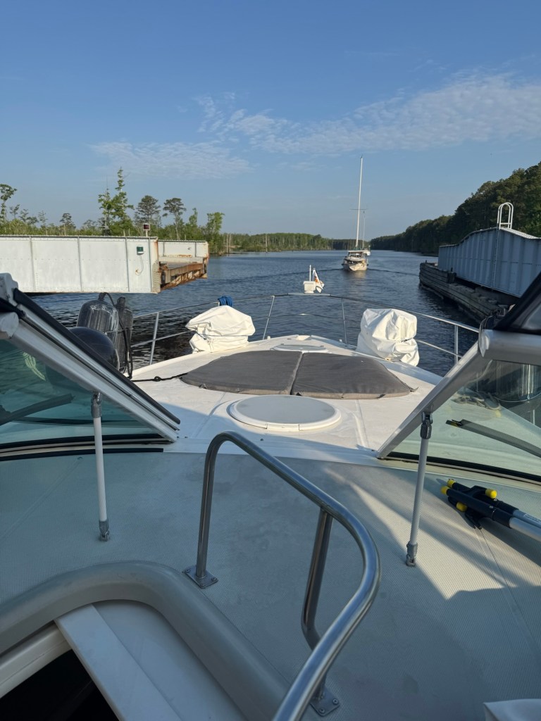This morning was all about laundry—glorious, everything-at-once laundry! With so many washers open, I felt like I’d won some kind of domestic lottery. While I was conquering Mount Washmore, Jeff was busy swapping out fuel filters and crankcase filters like a pro. He even squeezed in a visit with the fiberglass guy, who’ll be repairing the port side of our swim platform once the boat is hauled out for bottom paint.