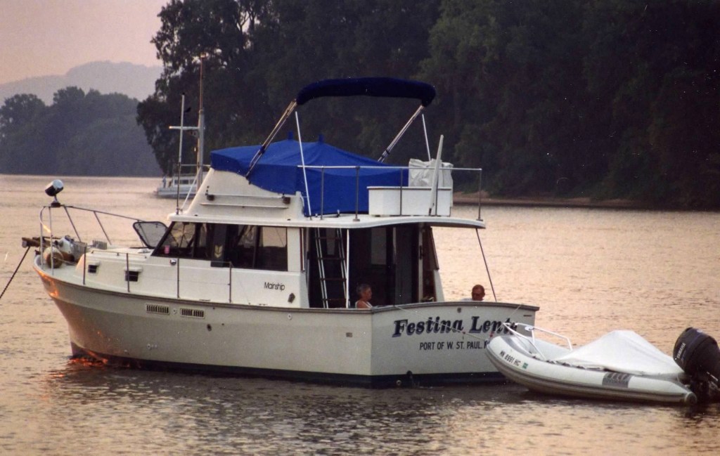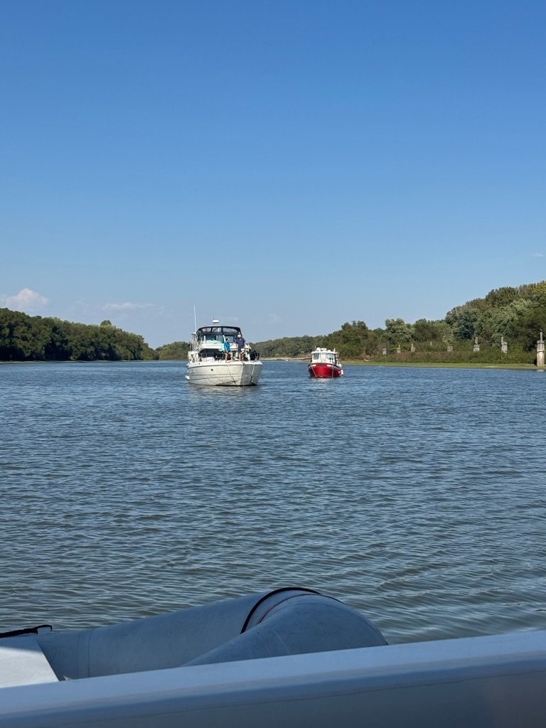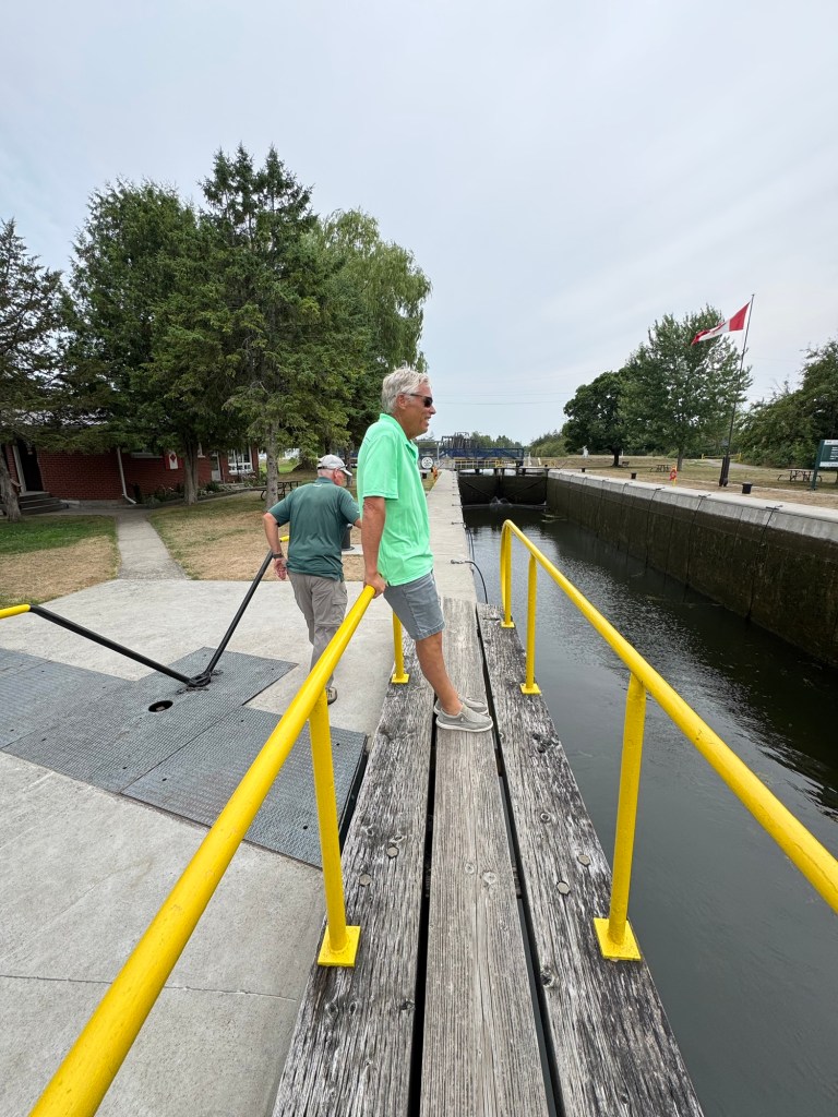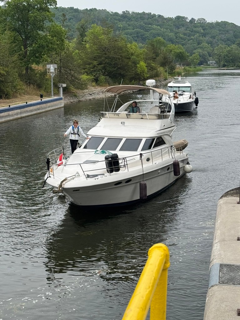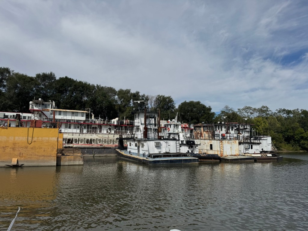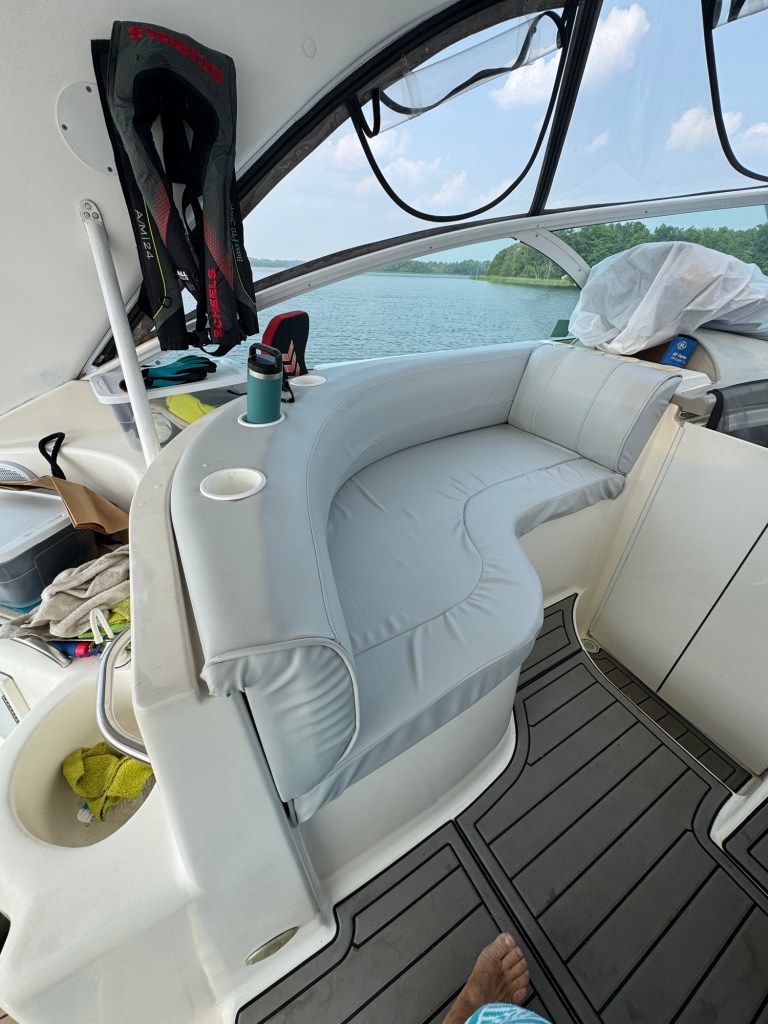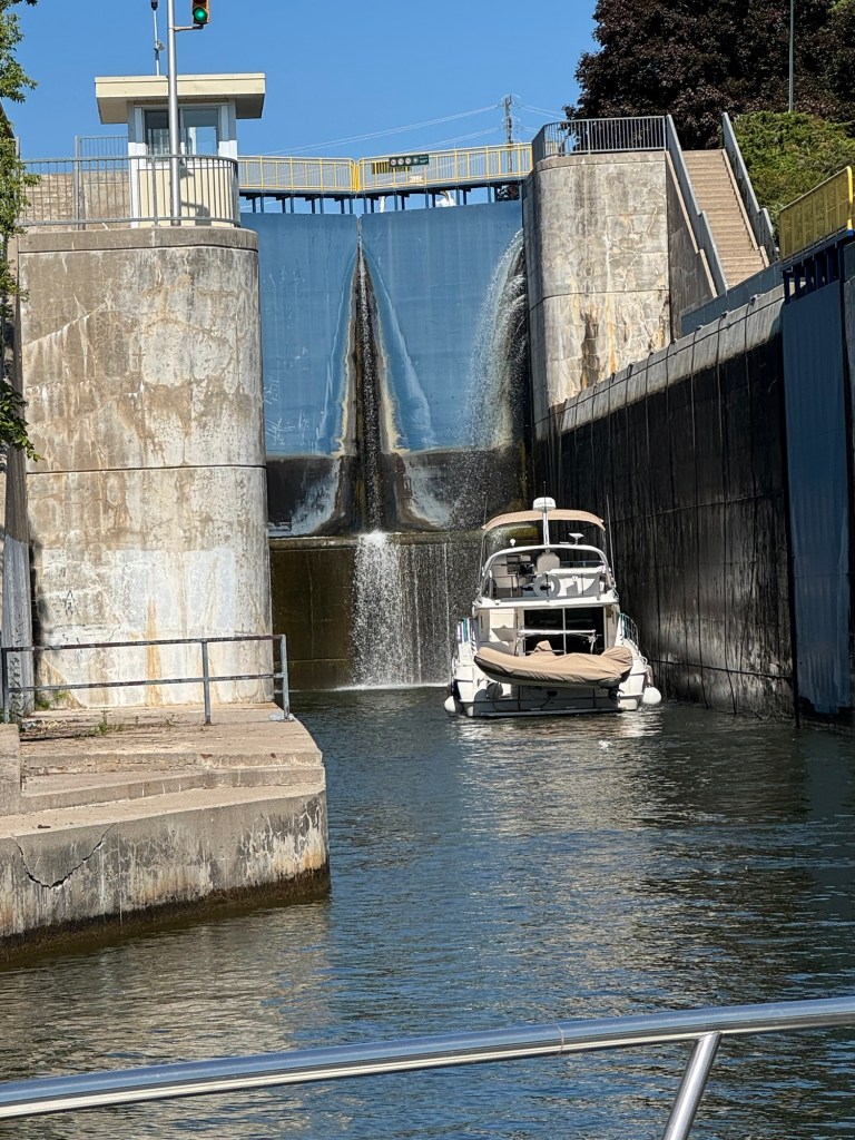 This morning was all about laundry—glorious, everything-at-once laundry! With so many washers open, I felt like I’d won some kind of domestic lottery. While I was conquering Mount Washmore, Jeff was busy swapping out fuel filters and crankcase filters like a pro. He even squeezed in a visit with the fiberglass guy, who’ll be repairing the port side of our swim platform once the boat is hauled out for bottom paint.